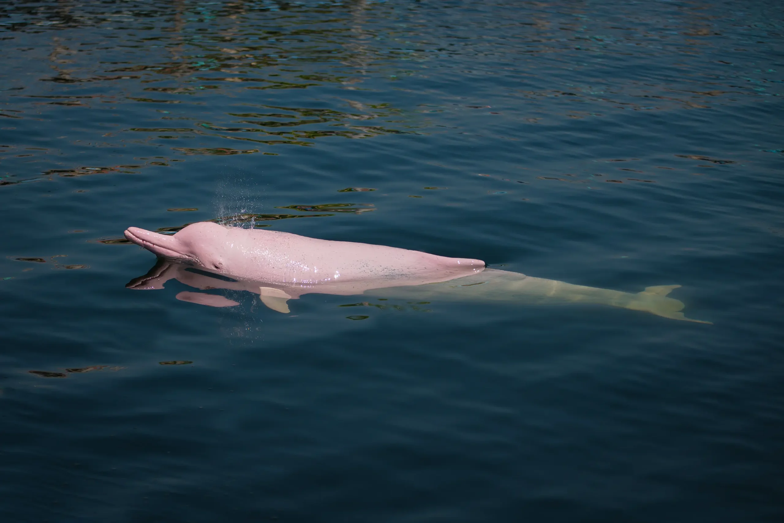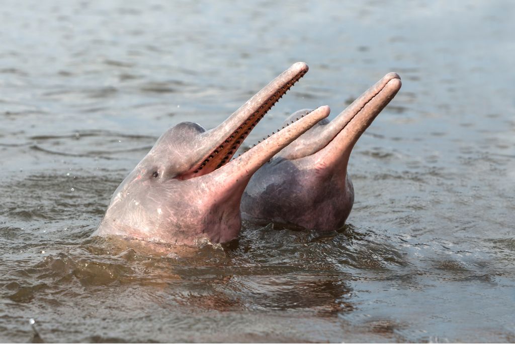 4.Pink River Dolphin (Dolphin Wekundu wa Mto) Samaki wa pekee anayeishi katika maji safi ya mto Amazon. Ana rangi ya waridi au kijivu na anaweza kuogelea nyuma. Anatumia sauti (echolocation) kuona katika maji machafu na yenye matope.