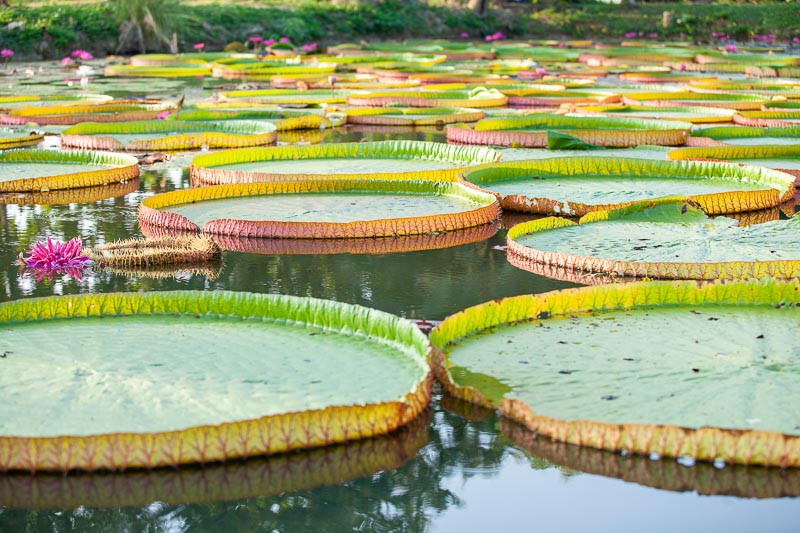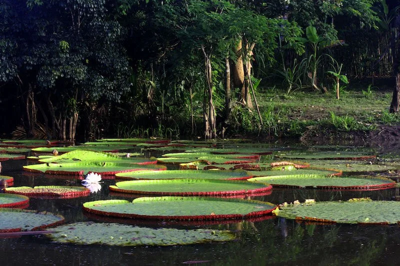5.Victoria Amazonica (Majani Makubwa ya Maji) Majani makubwa ya maji yanayofikia kipenyo cha mita 3. Yanatosha kubeba mtoto au hata mtu mzima mdogo. Maua yake hubadilika rangi kutoka nyeupe hadi waridi na hutoa harufu tamu hasa usiku.